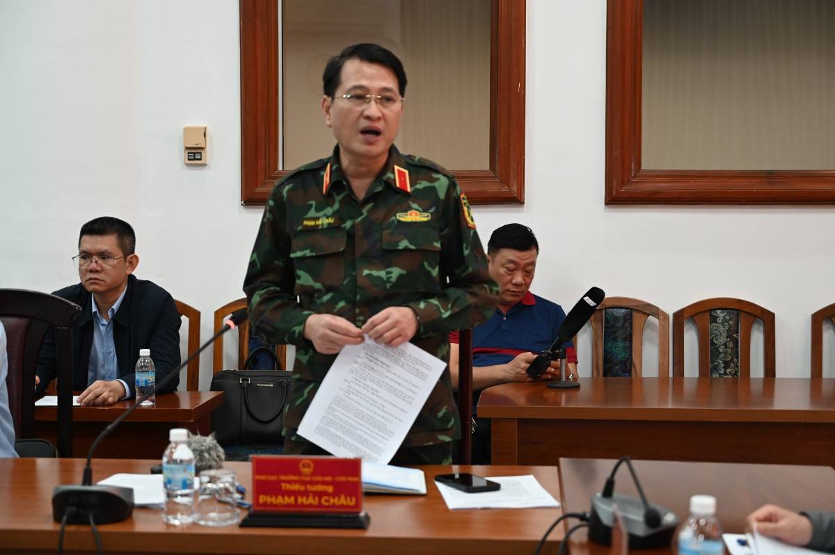 Thiếu tướng Phạm Hải Châu, Phó Cục trưởng Cục Cứu hộ - Cứu nạn (Bộ Tổng Tham mưu Quân đội Nhân dân Việt Nam), nhận định tình hình mưa lũ và phương án tìm kiếm người mất tích. (Ảnh : Ngọc Vân)