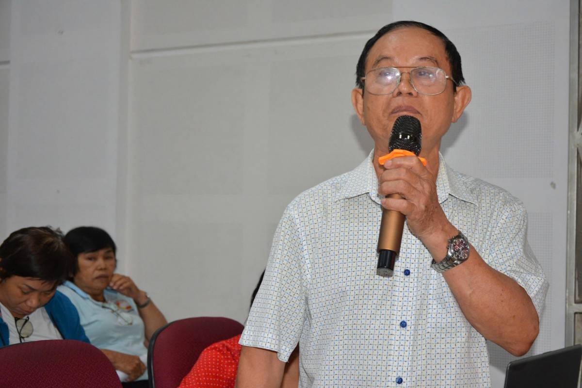 | Ông Nguyễn Văn Thân, Chủ tịch Hiệp hội Doanh nghiệp nhỏ và vừa Việt Nam, đại biểu Quốc hội hai khóa XIV, XV , ứng cử viên ĐBQH khoá XVI chia sẻ và lắng nghe nguyện vọng của các cử tri tại phường Phước Long. |