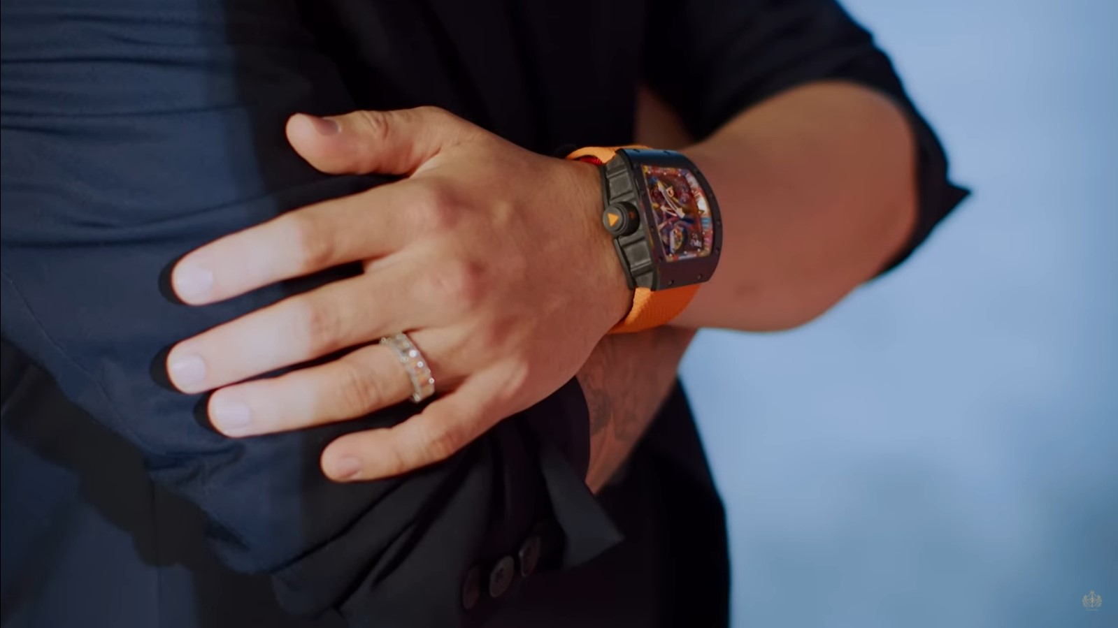 "Thông thường khi đeo đồng hồ, mình luôn sợ nó bị va chạm và trầy xước, bị mưa nắng bào mòn. Tuy nhiên, với chiếc đồng hồ này, Richard Mille đã truyền tải được thông điệp: đồng hồ phải phục vụ mình, chứ không phải mình tìm cách phục vụ đồng hồ", anh chia sẻ.