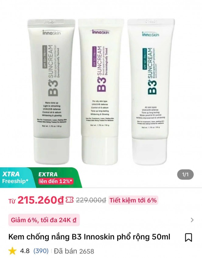 | Giá sản phẩm kem chống nắng InnoSkin B3 được bán trong livestream ngày 15/4. Nguồn ảnh internet |