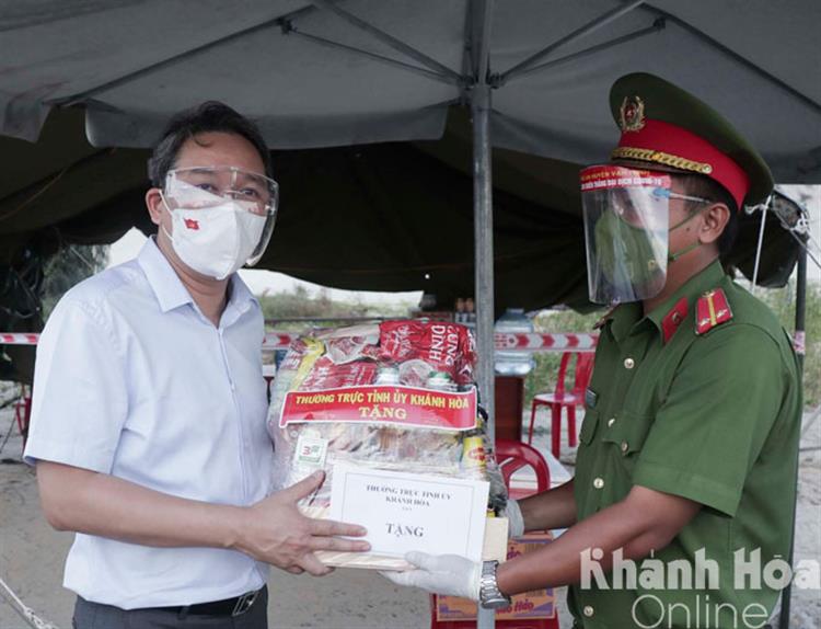 Ông Nguyễn Hải Ninh, Ủy viên Trung ương Đảng, Bí thư Tỉnh ủy Khánh Hòa thăm và tặng quà cho các chốt phòng chống covi-19 tại TP.Nha Trang.