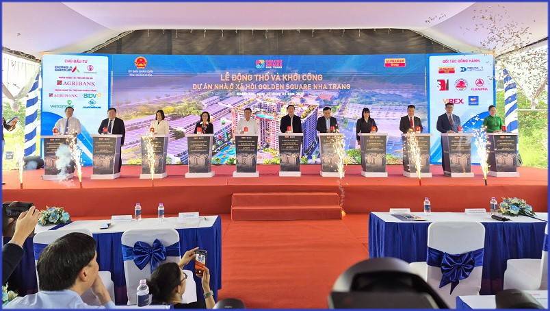 Dự lễ khởi công Dự án Nhà ở xã hội CT-01, Golden Square, Nha Trang có ông Trần Hồng Minh, Ủy viên Trung ương Đảng, Bộ trưởng Xây dựng; ông Trần Phong, Phó Bí Thư Tỉnh ủy, Chủ tịch Ủy ban nhân dân tỉnh Khánh Hòa và đại diện các cơ quan, ban ngành Trung ương và địa phương.