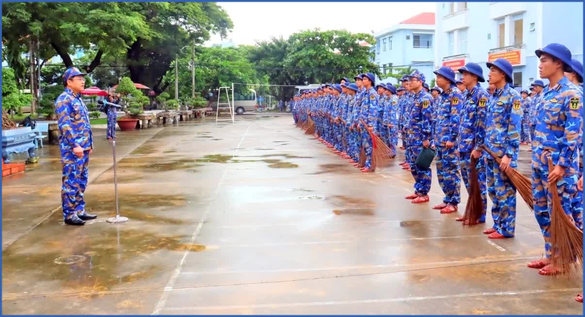 Học viện Hải Quân huy động hơn 300 cán bộ, học viên về phường Tây Nha Trang hỗ trợ dọn dẹp, khơi thông môi trường, dọn bùn rác trường học, trạm y tế. Trong đợt lũ này, gần 900 lượt cán bộ, học viên của Học viện đã tham gia cứu trợ, tiếp cận vùng ngập sâu và hỗ trợ hơn 2.000 người dân. (Ảnh VOV)