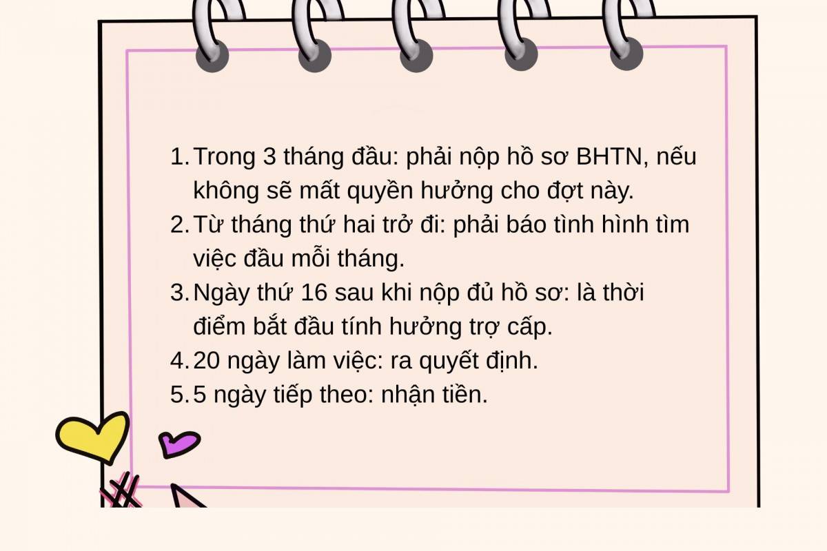 Trong 3 tháng đầu: phải nộp hồ sơ BHTN, nếu không sẽ mất quyền hưởng cho đợt này.