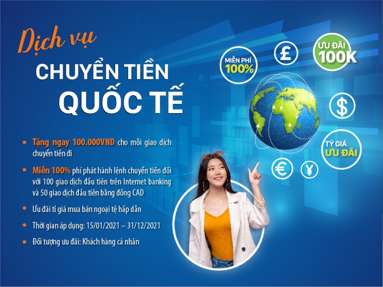 Hiện nay, xu hướng định cư, du học ngày càng tăng mạnh kéo theo việc gia tăng nhu cầu về dịch vụ chuyển tiền quốc tế để trợ cấp thân nhân, sử dụng dịch vụ ở nước ngoài. Nắm bắt được nhu cầu đó, từ 15/01/2021 đến 31/12/2021, LienVietPostBank dành nhiều ưu đãi hấp dẫn cho khách hàng có nhu cầu chuyển tiền quốc tế (du học, định cư, trợ cấp thân nhân ở nước ngoài, người nước ngoài đang làm việc tại Việt Nam có nhu cầu chuyển thu nhập về nước…).