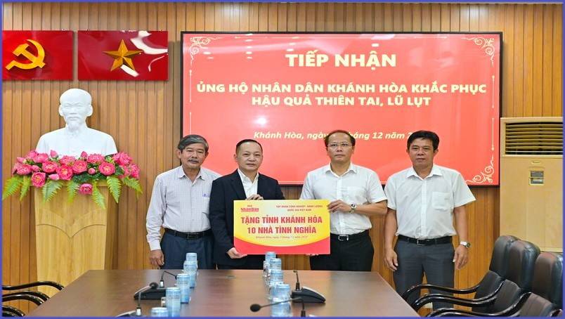 | Ngày 4-12, đoàn công tác của Công an TP. Cần Thơ phối hợp với Công an tỉnh Khánh Hòa thăm, hỗ trợ đồng bào tại 2 xã Diên Khánh, Diên Điền. Đoàn đã trao tặng Ủy ban MTTQ Việt Nam xã Diên Khánh và Ủy ban MTTQ Việt Nam xã Diên Điền, gồm Nhu yếu phẩm, quần áo ấm và 45 triệu đồng, do cán bộ, chiến sĩ Công an TP. Cần Thơ quyên góp. Trao tặng cho 4 hộ gia đình tại 2 xã, mỗi hộ 10 triệu đồng cùng nhu yếu phẩm. Tổng trị giá các phần quà trong đợt hỗ trợ lần này là 400 triệu đồng. Ngày 3/12, Báo điện tử Chính phủ phối hợp với Công ty Amway Việt Nam đã trao tặng 500 triệu đồng và sản phẩm thiết yếu là 632 chai nước rửa đa năng L.O.C (trị giá 100 triệu đồng). Sáng 3/12, tại Nha Trang, đại diện Báo Nhân Dân trao kinh phí hỗ trợ xây dựng 10 căn nhà tình nghĩa cho các hộ dân. Ông Nguyễn Khắc Hà, Phó Bí thư Tỉnh ủy, Chủ tịch Ủy ban Mặt trận Tổ quốc Việt Nam tỉnh tiếp nhận và cám ơn Báo Nhân Dân, Tập đoàn Công nghiệp - Năng lượng quốc gia Việt Nam. Chiều 2-12, Hiệp hội Doanh nghiệp TP. Hồ Chí Minh tặng 200 suất quà tại Tổ dân phố Ngọc Hội 1 (phường Tây Nha Trang); 150 suất quà tại các tổ dân phố: Thái Thông 1, Thái Thông 2, Thủy Tú, Vĩnh Xuân, Đất Lành (phường Nam Nha Trang), tặng 150 suất quà tại xã Suối Hiệp mỗi suất quà trị giá 1 triệu đồng/suất. Sáng 1-12, Ủy ban MTTQ Việt Nam tỉnh Khánh Hòa tổ chức tiếp nhận kinh phí và hàng hóa do các doanh nghiệp ủng hộ Công ty Cổ phần Nhà ga Quốc tế Cam Ranh hỗ trợ 200 triệu đồng; Công ty Cổ phần Du lịch Vietravel trao tặng 30.000 tập vở và 20.000 cây bút, Công đoàn công ty ủng hộ 150 triệu đồng. Bộ Tài chính đã ban hành Quyết định xuất cấp gạo dự trữ quốc gia hỗ trợ tỉnh Khánh Hòa. Sở Nông nghiệp và Môi trường đã huy động công chức, viên chức, đoàn viên thanh niên phối hợp với Cục dữ trữ Nhà nước khu vực XIII, lực lượng bộ đội, dân quân, cán bộ tại các địa phương kịp thời vận chuyển 2.000 tấn gạo dự trữ quốc gia đến 44 xã, phường trong tỉnh bị thiệt hại do mưa lũ. |