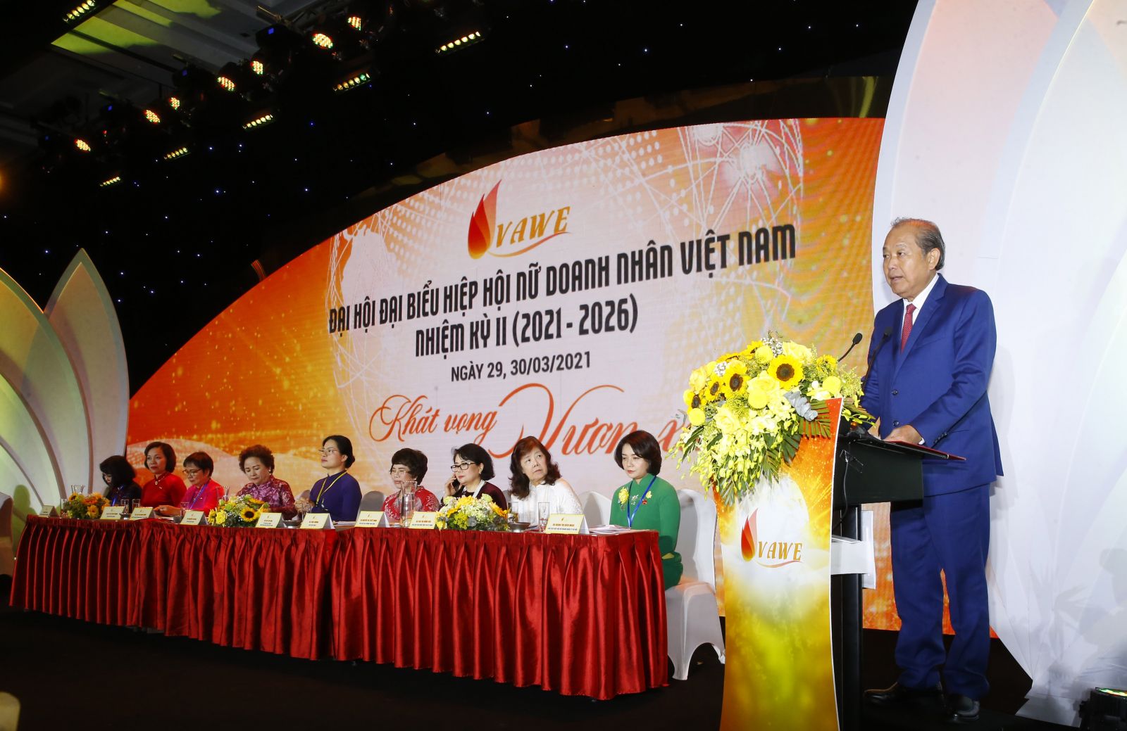 Phó Thủ tướng Thường trực Chính phủ Trương Hòa Bình tại Đại hội Hiệp hội nữ doanh nhân Việt Nam (VAWE) lần thứ 2. Ảnh VGP/Lê Sơn